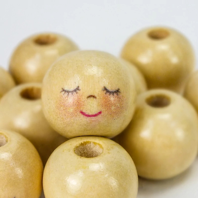 2 cm átmérőjű fagolyók, aranyos festett arccal.